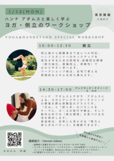 この日は、Hannahが午前にヨガの倒立にフォーカスしたクラスを教えます。午後のアレクサンダーテクニーク&ヨガのクラスでは、Debiも講師として参加します。